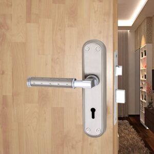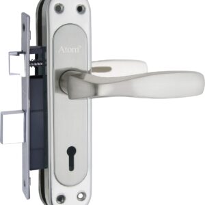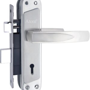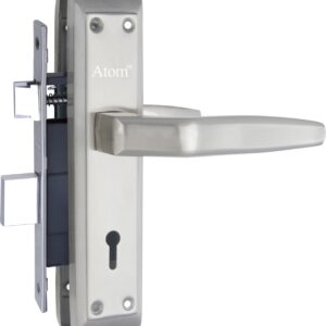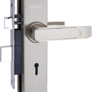 Atom Stainless Steel Mortise Door Handle Set with Lock Body | Silver Satin Finish | Main door, Home door, Washroom, Bathroom, Bedroom, Living Room, Skoda