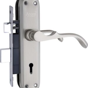 Atom Stainless Steel Mortise Door Handle Set with Lock Body | Silver Satin Finish | Main door, Home door, Washroom, Bathroom, Bedroom, Living Room, Mercury