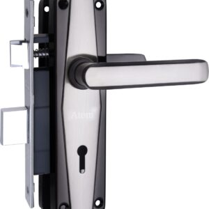 Atom 7 Inch Iron Mortise Door Handle Set with Lock Body | Finish Black Silver | 3 Keys | 6 Lever Double Stage Lockset for Door, Main door, Bedroom, Living Room, 703-KY