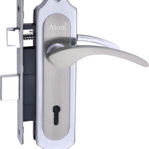 Atom 7 Inch Iron Mortise Door Handle Set with Lock Body | Finish Black Silver, Brass Antique, Black Gold & CP Matt | 3 Keys | 6 Lever Double Stage Lockset for Door, Main door, Bedroom, Living Room, 509-KY
